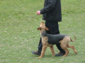 In der Gruppe, aufmerksame und geschlossene Leinenführigkeit.
