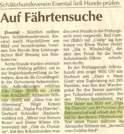 7. November 1999 BH-Prüfung bei der SV OG Bühl-Eisental