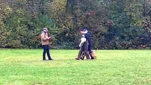 unbeeindruckt, in der Übergangsphase Griff etwas ruhiger halten, lässt sicher ab, Bewachungsphase ist i.O.;