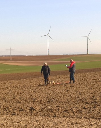 Der Winkel wird sauber ausgearbeitet, der Hund hebt zweimal kurz den Kopf hoch, danach wird der Schenkel mit tiefer Nase abgesucht; |