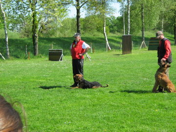 Außer dem Fehlverweisen hat sich Quincy auf der Fährte von seiner besten Seite gezeigt. In der Unterordnung waren sowohl Hund, als auch Hundeführer etwas unkonzentriert. Die Ungereimheiten beim Apportieren werden wir noch abstellen. Der Gehorsam beim "Revieren" na, ja! Da müssen wir mit Quincy nochmals reden. Das "Pech" beim Angriff auf der "Langen", o.k., kann mal passieren. Die vollen und ruhigen Griffe haben jetzt erste Priorität.