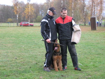 Der Hund geht gut in die Abwehr, verschlechtert aber seinen Griff in der Belastungsphase, der Hund belästigt stark nach dem "Aus"; |