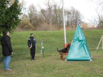 Der Hund reviert schnell und zügig, läßt aber das 5 Versteck aus; |