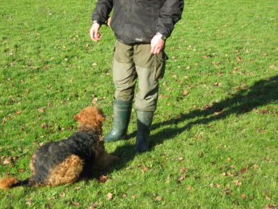 Auch beim "Platz" ist nach der Ausführung die Aufmerksamkeit zum Hundeführer wichtig.