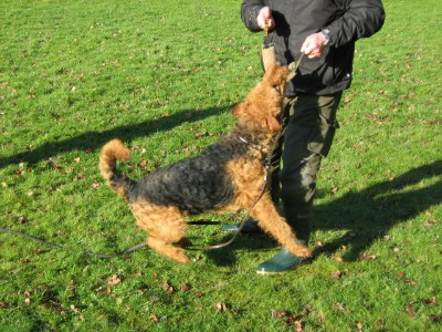 Am Ablassen und der Freigabe der Beisswurst arbeiten wir noch. Diese Übung muss mit einer langen Leine abgesichert werden, da Käthe dazu neigt sich vom Hundeführer "wegzuspielen".
