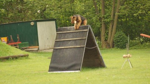 Der Hund zeigt kräftige Sprünge, die Übung wird einwandfrei ausgeführt; |