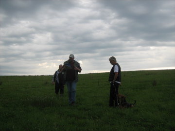 Der Winkel wird gut ausgearbeitet, der Schenkel wird ruhig abgesucht, in der Mitte des Schenkels sucht der Hund kurz mit leicht hoher Nase; |