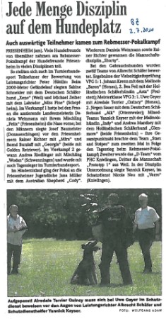 Zeitungsbericht in der "Badischen Zeitung" am 2. Juli 2010