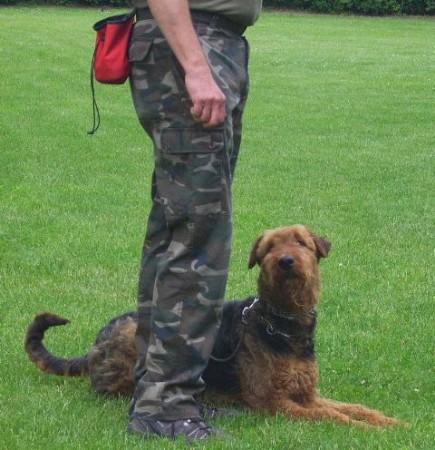 Hier ist Quincy noch ziemlich entspannt und der erste kleine Fehler (Unachtsamkeit) zu sehen. Der Futterbeutel ist auf der "falschen" Seite.