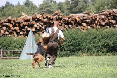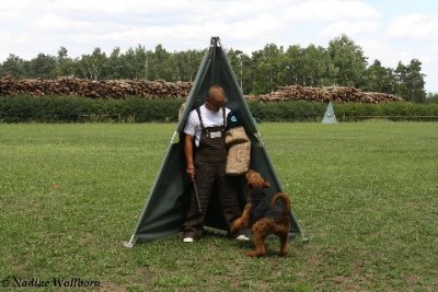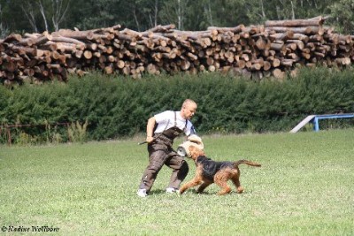 Quincy wurde dreimal zum Verbellen geschickt und hat den Helfer nicht belästigt. Oh, Wunder!