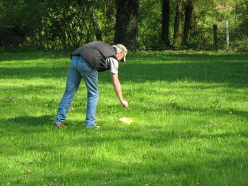 Ich gebe das Kommando "Voraus" und zeige mit dem Arm in Richtung Fressnapf.