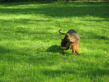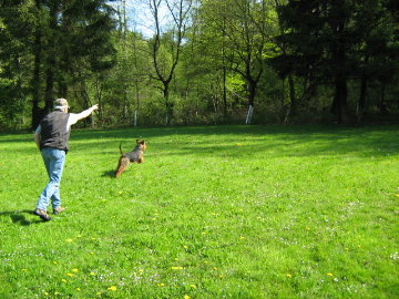 Laufe zurück und nehme den Hund wieder in "Grundstellung".