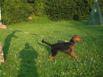 Beim Schutzdienst lasse ich Quincy jetzt ab und zu zuschauen, um seine Reaktion zu beobachten. Wenn er den Helfer sieht, baut er bereits eine gewisse Spannung auf, ohne gleich "auszuflippen". Und das ist gut so!