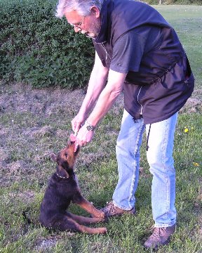 Die ganze "Welpenstunden" dauert höchstens 5 - 6 Minuten, dann läßt die Konzentration des Hundes schon nach.
