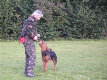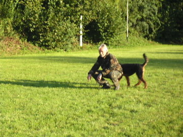 ....., aber er bringt ihn mir nicht spontan zurück. Ich gehe dann in die Hocke und warte. Irgendwann merkt er dann, dass es nicht weitergeht, wenn er mir den Ball nicht bringt.