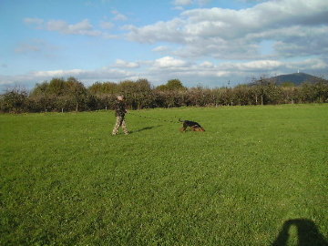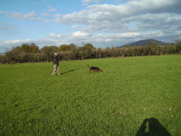 Ich habe einmal versucht auf Wiese zu suchen. Wir werden wieder zurück auf Ackergelände gehen, da der Hund dort Konzentrierter und ruhiger sucht.