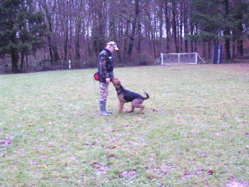 Vorsitz schräg, Kommando "Nein", Wiederholung der Übung. Natürlich werden die anderen Übungen auch ständig geübt und wiederholt. (11 Übungseinheiten mit 5 bis 6 Wiederholungen)