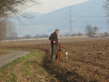 Vor dem Ansatz lass ich den Hund "Sitz" machen.