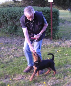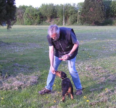 Gleichzeitig wird die Bindung zum Hundeführer gestärkt. Das ist noch kein richtiges Üben oder Arbeiten, sondern die "sinnvollere" Welpenstunde. Nach ca. 15 Stückchen Wiener Wurst erlischt dann meistens schon der Fresstrieb.