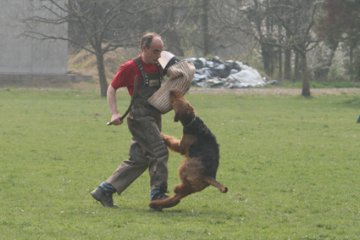 Quincy war gut, obwohl er sehr starken Duchfall hatte. Der Hundeführer hat es aber fertiggebracht, durch einen kapitalen Fehler, den Hund aus dem Gesamtprädikat "SG" zu bringen. Die Fährte war so wie man sich eine Fährte vorstellt und ohne den "unterirdischen" Fehler des Hundesführers vorzüglich. Auch die Unterordnung war, ausser dem Fehler des HF an der Schrägwand und dem voraussehbaren Punktabzug beim "Voraus", sehenswert. Besonders hat mich gefreut, dass mir Quincy im Schutzdienst im Gehorsam nicht aus dem Ruder gelaufen ist. Das wir für ruhigen Griff noch arbeiten müssen, wußten wir vorher schon.